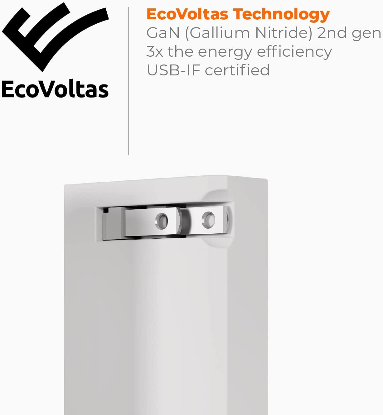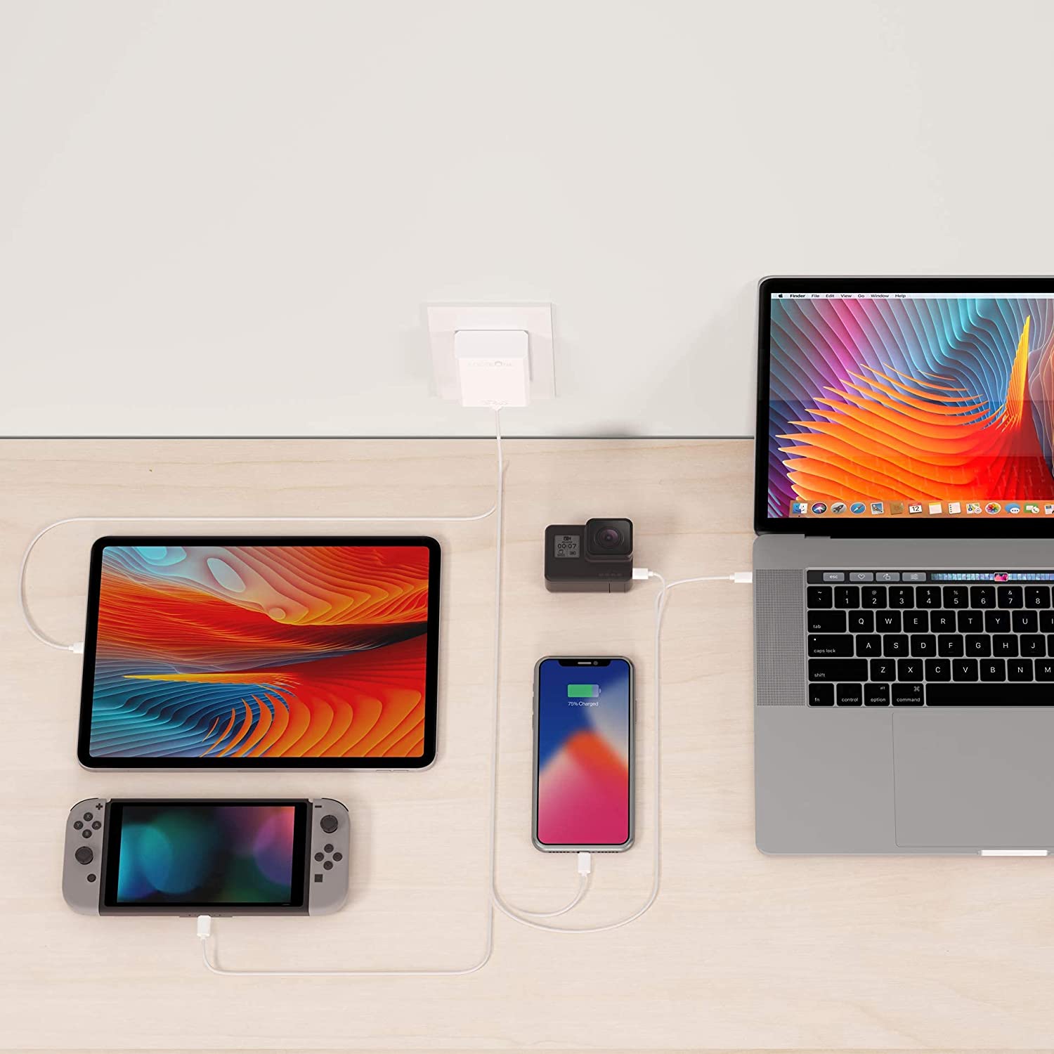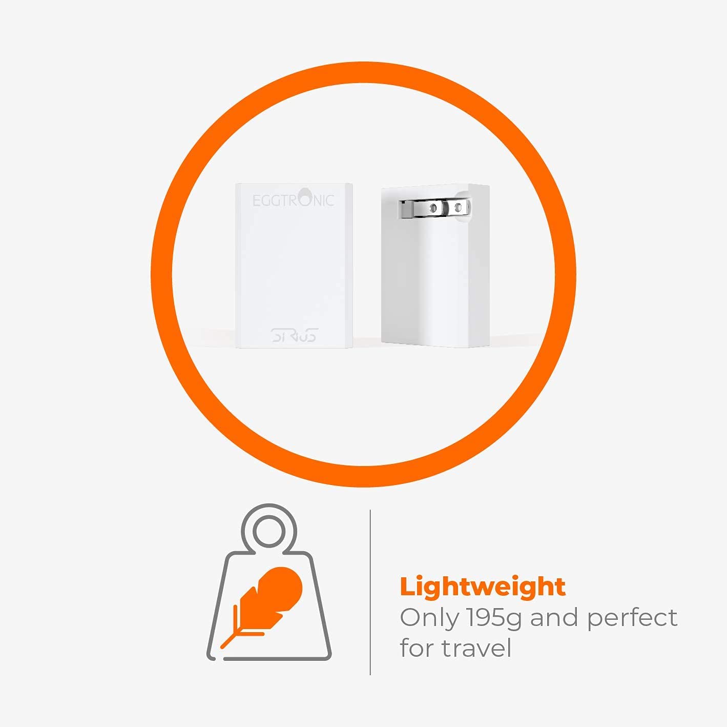 Eggtronic PAWH65 Sirius Compact Portable AC 65 Watt Universal Smart Electronic Device USB Adapter Wall Charger, White